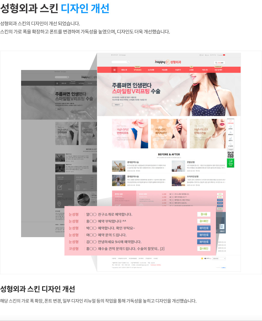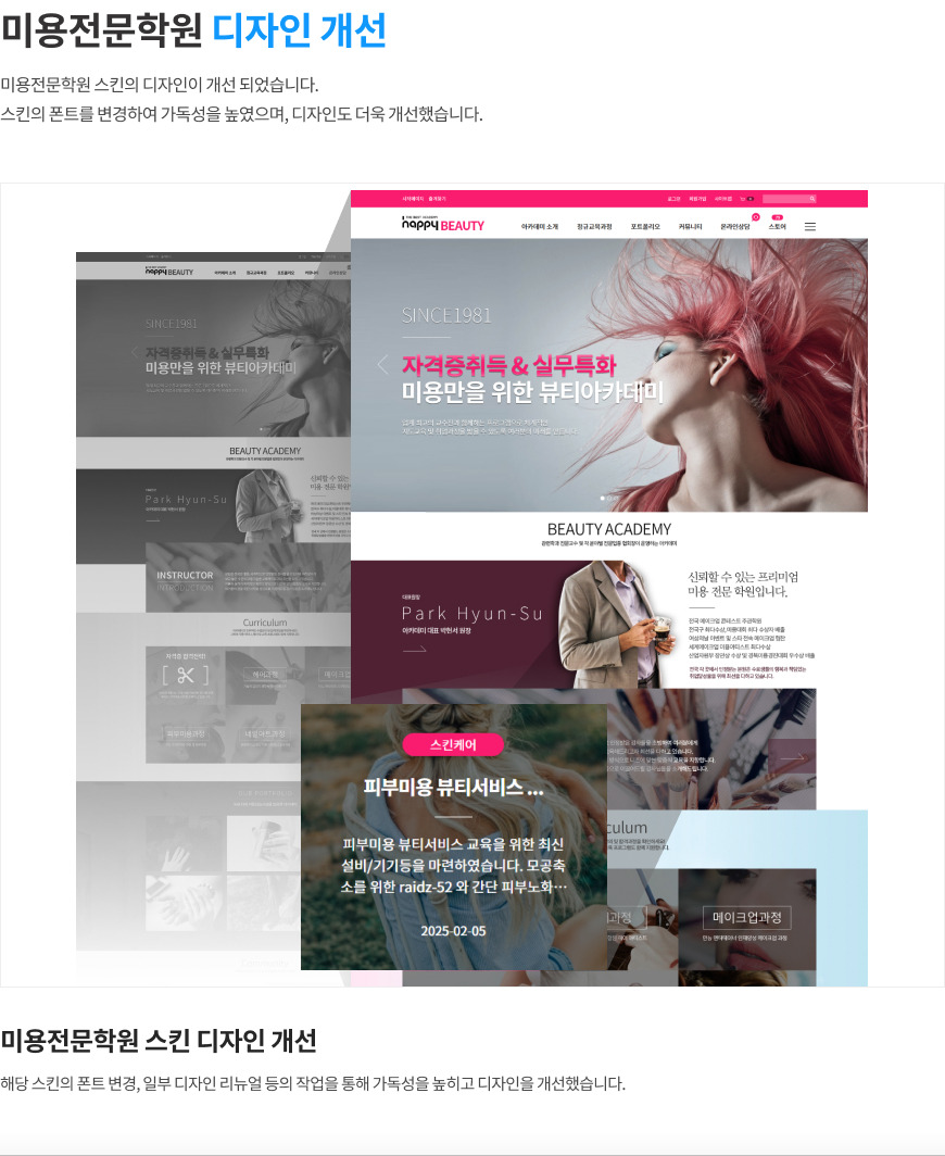 [업그레이드] 간편 홈페이지 미용전문학원, 성형외과 스킨이 리뉴얼 되었습니다 본문