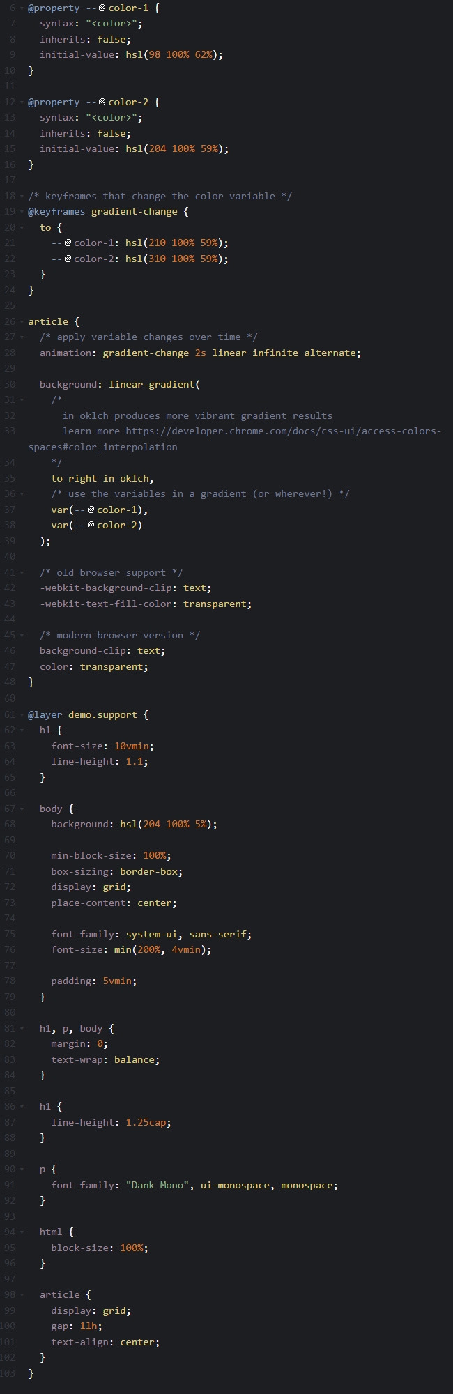 linear-gradient, background-clip, text-fill-color 속성을 이용했습니다.