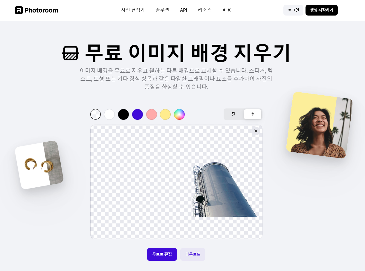 AI 기반 배경제거, 배경 생성, 리터칭, 이미지생성, 이미지 확대, 로고 생성까지 가능한 AI 이미지 편집기 photoroom