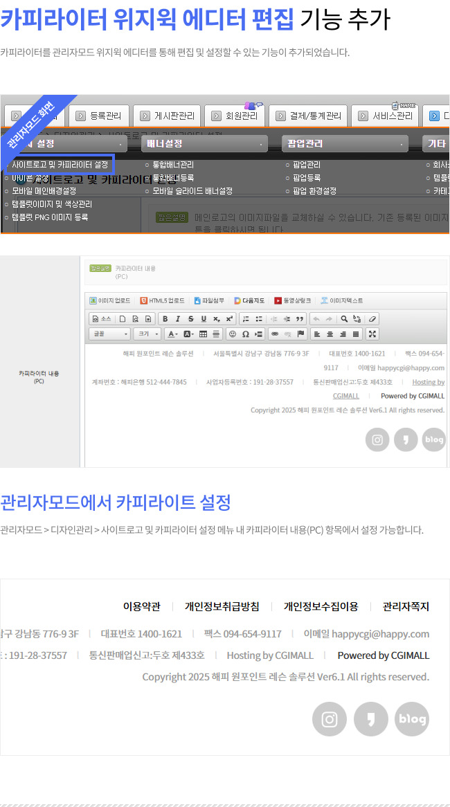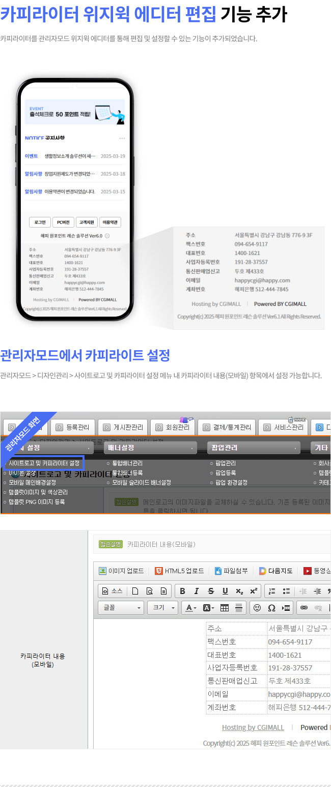| [업그레이드] 해피 업체정보소개 웹솔루션 Ver6.1로 업그레이드 되었습니다 (0) | 2025.03.24 |