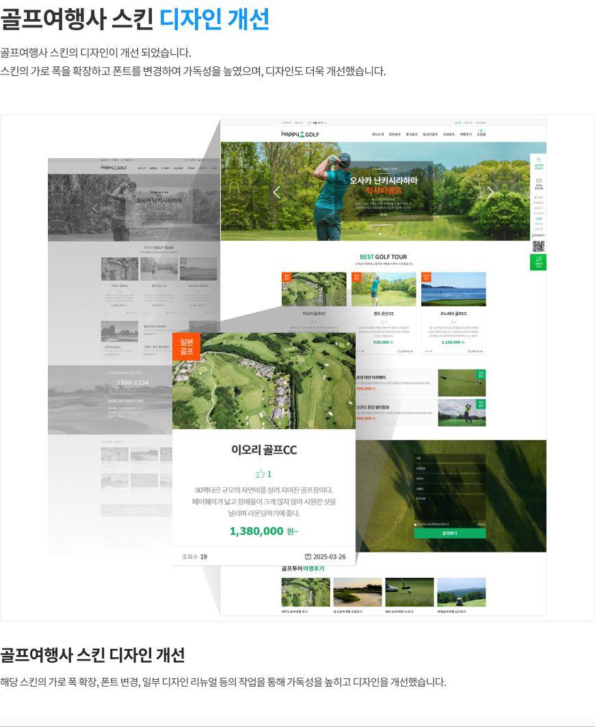 골프여행사, 정치인, 요양병원 스킨 리뉴얼