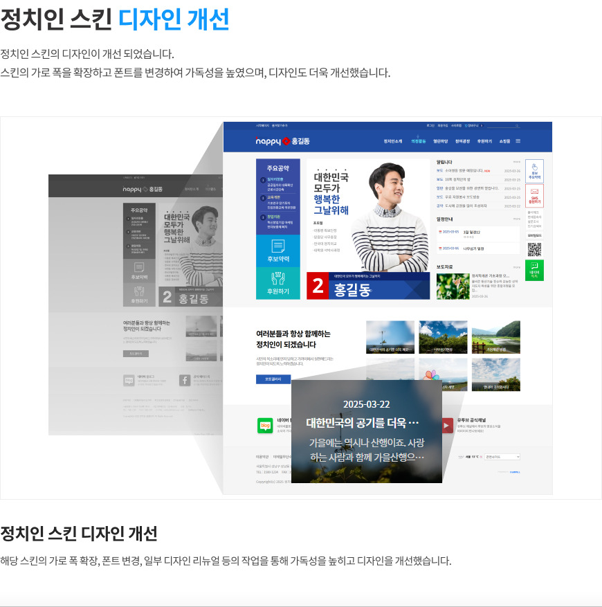 [업그레이드] 간편 홈페이지 골프여행사, 정치인, 요양병원 스킨이 리뉴얼 되었습니다 본문