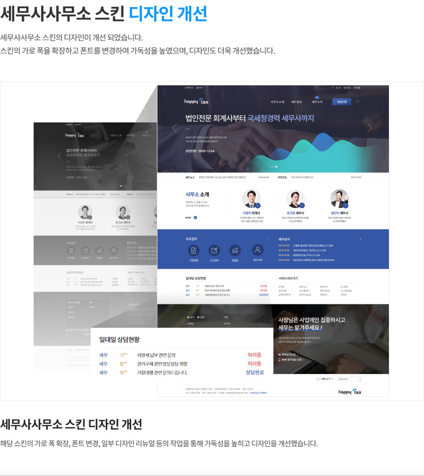 간편 홈페이지 지역농산물, 가구공방, 세무사사무소, 교회 스킨이 새롭게 리뉴얼 되었습니다.