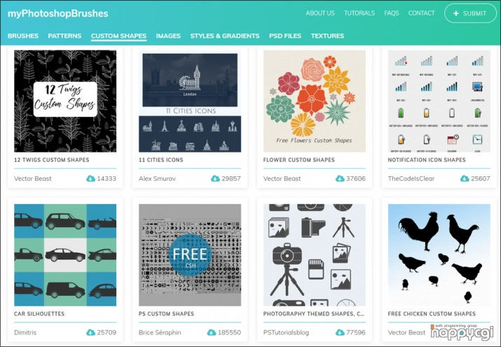 PhotoshopBrushes .com에서 전 세계 아티스트가 만든 Photoshop 브러시를 다운받아