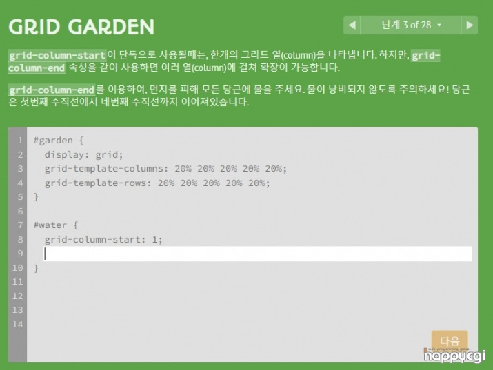 [해피CGI][cgimall] 게임으로 그리드 레이아웃 배우기 - cssgridgarden.com 본문