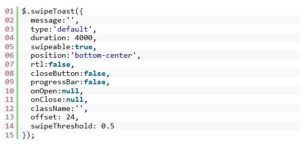 swipetoast는 기존 클릭 상호작용과의 호환성을 유지하면서도 스와이프 제스처를 구현하여 알림을 해제하는 가볍지만 강력한 jQuery 토스트 알림 플러그인입니다.