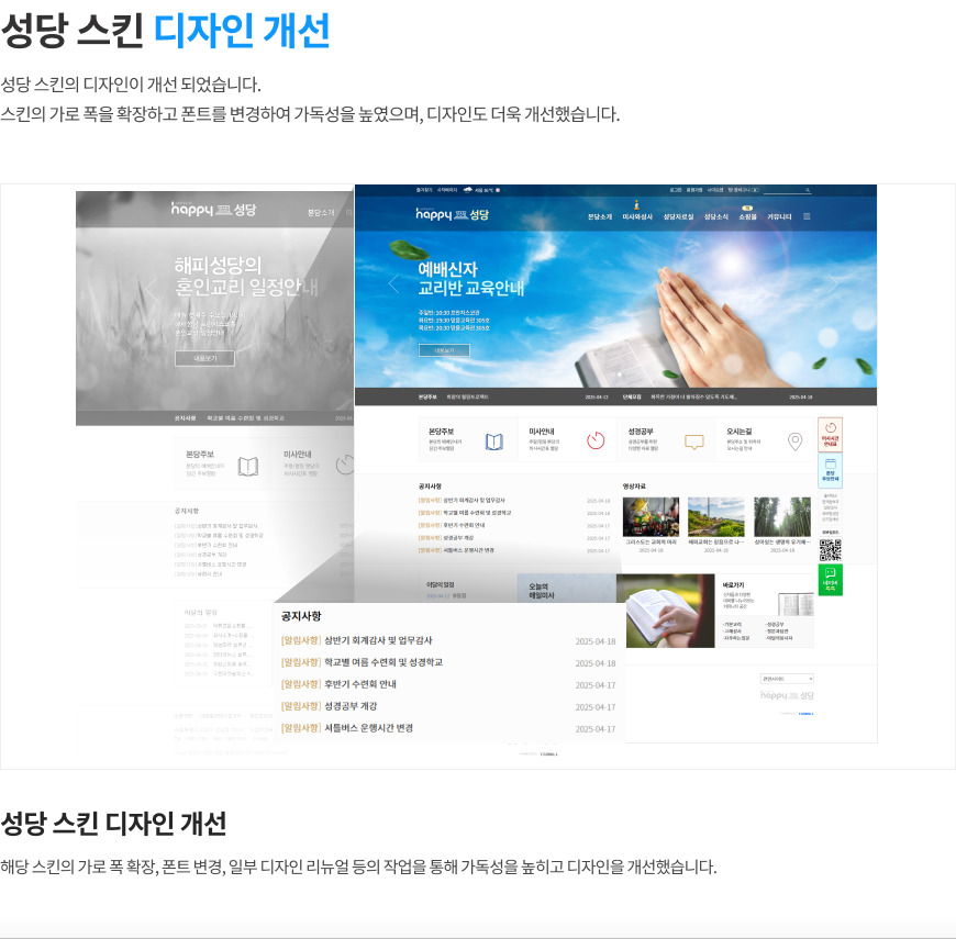 간편 홈페이지 성당, 보험상담, 피부과, 이삿짐센터, 홈클린, 렌트카 스킨이 새롭게 리뉴얼 되었습니다.