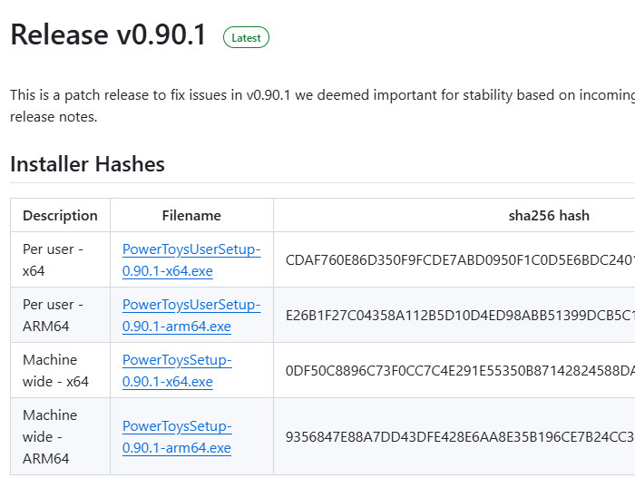 PowerToys 버전 확인 및 업데이트 - https://github.com/microsoft/PowerToys/releases
