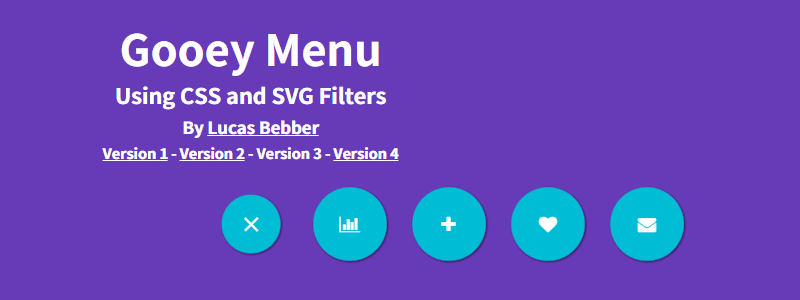 **CSS Gooey Menu (Version 3)**는 SVG 필터와 CSS 트랜지션을 조합해 만든 인터랙티브한 원형 메뉴입니다.