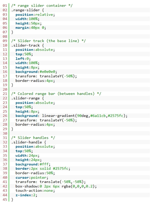1. 트랙, 범위 막대, 핸들을 사용하여 범위 슬라이더 컨테이너를 만듭니다.