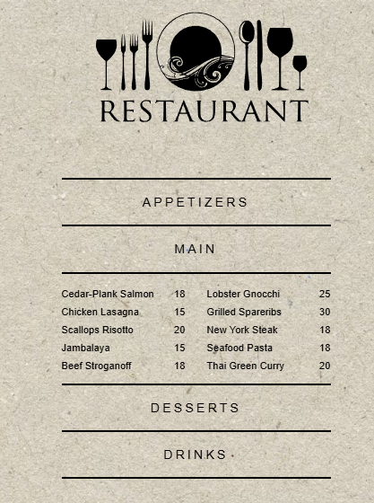 { name: 'Cedar-Plank Salmon', price: 18 },