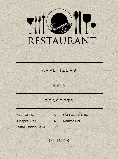 { name: 'Stuffed Mushrooms', price: 9 },