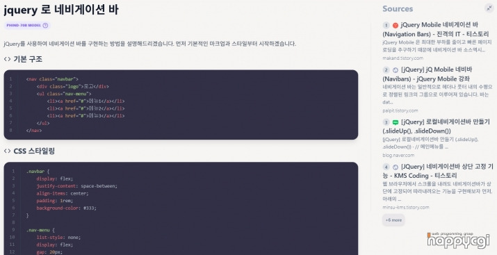 다양하게 활용가능하겠으나, jquery 네비게이션 바를 만들어 달라고 하니,