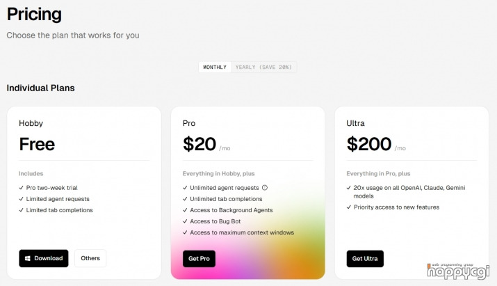 Cursor는 무료로 시작할 수 있지만, AI 호출량이 많거나 고급 기능 사용이 필요하다면 유료플랜이 필수 입니다.