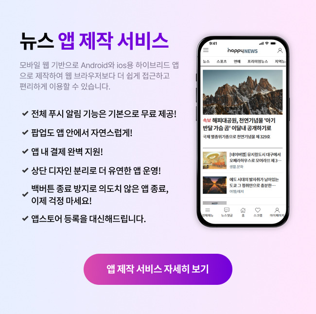 해피 인터넷뉴스 웹솔루션 Ver3.5로 업그레이드 되었습니다.