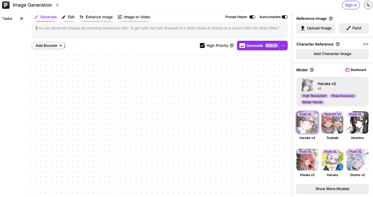 pixAI를 사용할려면 크레딧이 필요하며, 기본적으로 회원가입시 일부 무료 크레딧을 지급합니다.