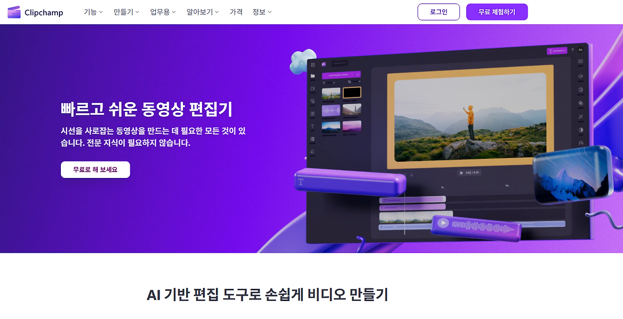 [해피CGI][cgimall] 웹과 모바일을 통해 간단한 영상 편집은 물론, AI 편집까지 가능한 clipchamp