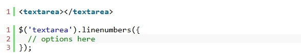 2. textarea 요소 에 함수를 호출하면 linenumbers 플러그인이 나머지 작업을 처리합니다.