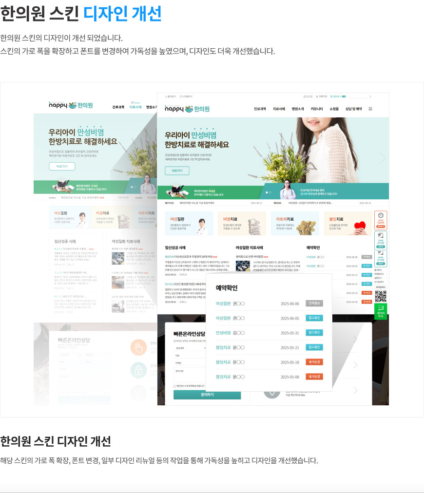 | [업그레이드] 간편 홈페이지 쇼핑몰01, 법률상담, 치과, 학원 스킨이 리뉴얼 되었습니다 (0) | 2025.07.24 |