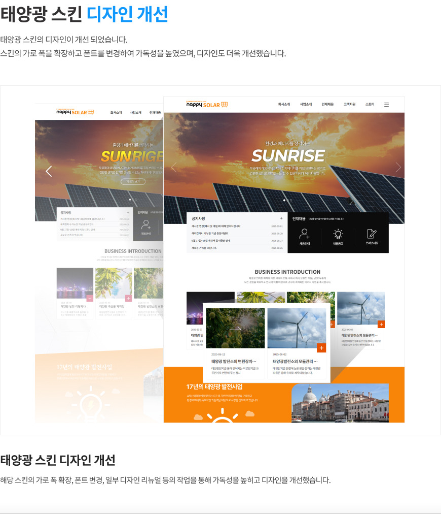 [업그레이드] 간편 홈페이지 태권도학원, IT기업02, 태양광, 한의원 스킨이 리뉴얼 되었습니다