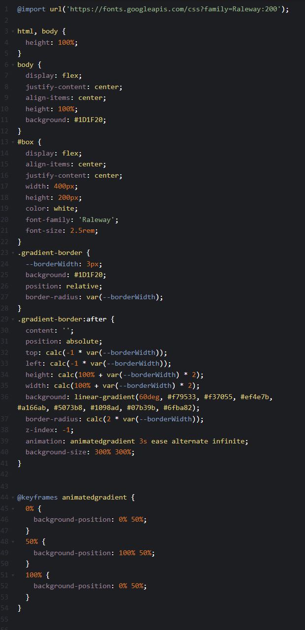 여백을 주어 해당 여백에 애니메이션과 그라데이션을 적용하여 보더처럼 만드는 방식입니다.