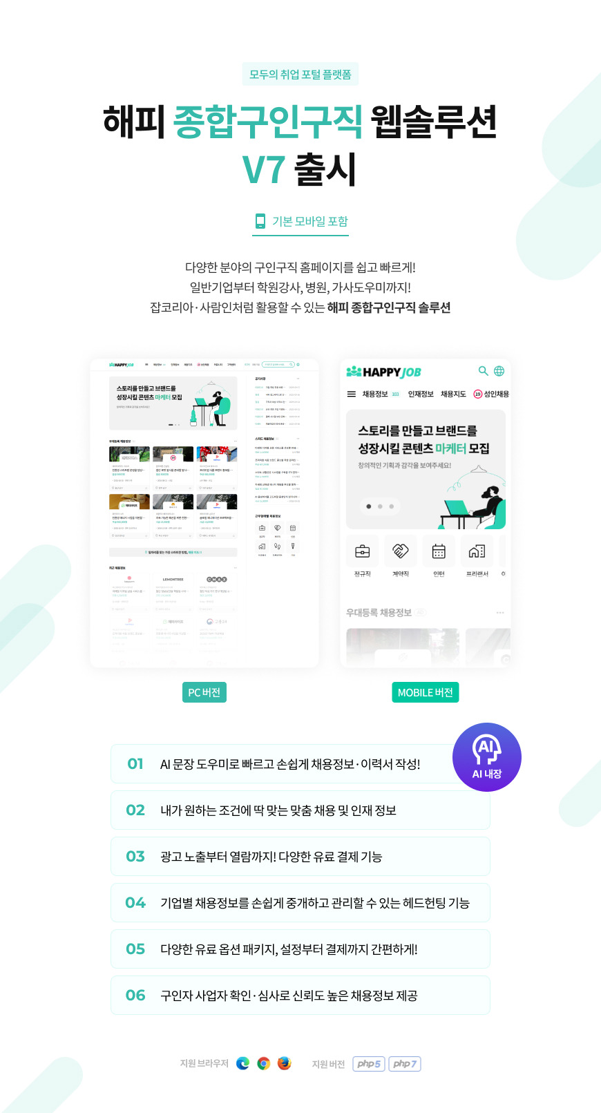 [출시] 해피 종합구인구직 웹솔루션 Ver7.0 새롭게 출시되었습니다 본문
