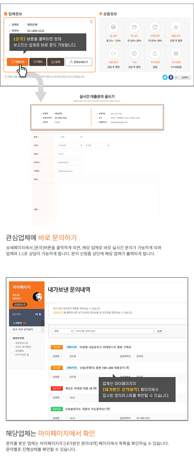 ✅ 다수의 대부업체가 확인하고 상담할 수 있는 실시간 문의 시스템