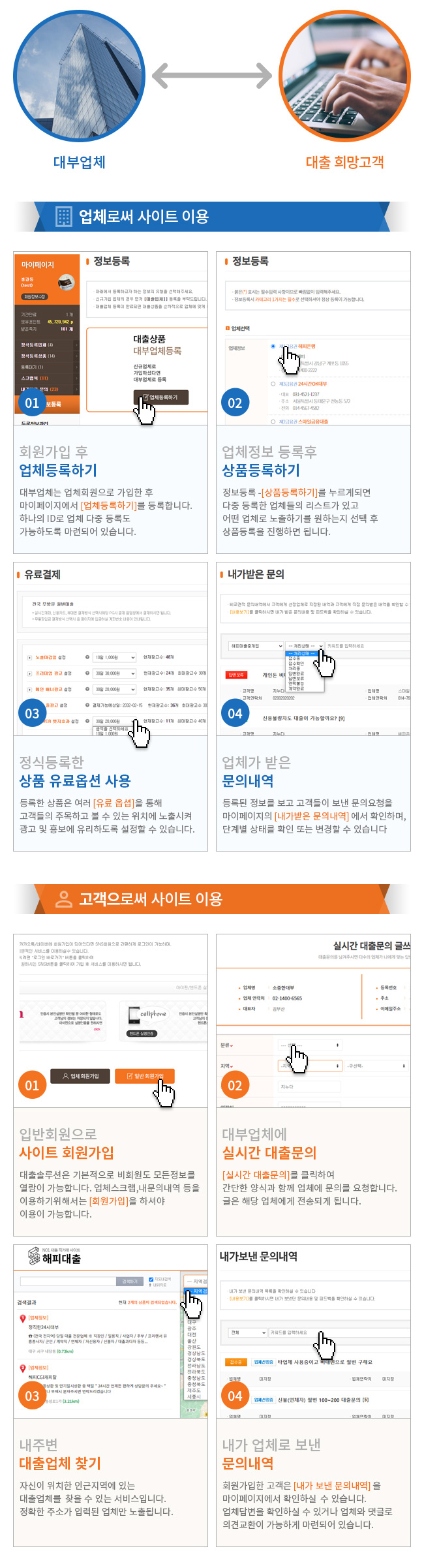 대부 업체와 고객을 온라인에서 연결해주는 플랫폼으로써,