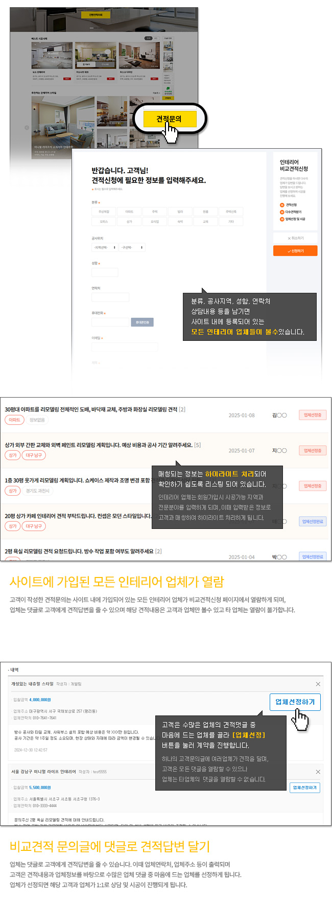 ✅ 인테리어 견적문의, 비교, 상담, 선택을 온라인을 통해 한번에 가능한 시스템