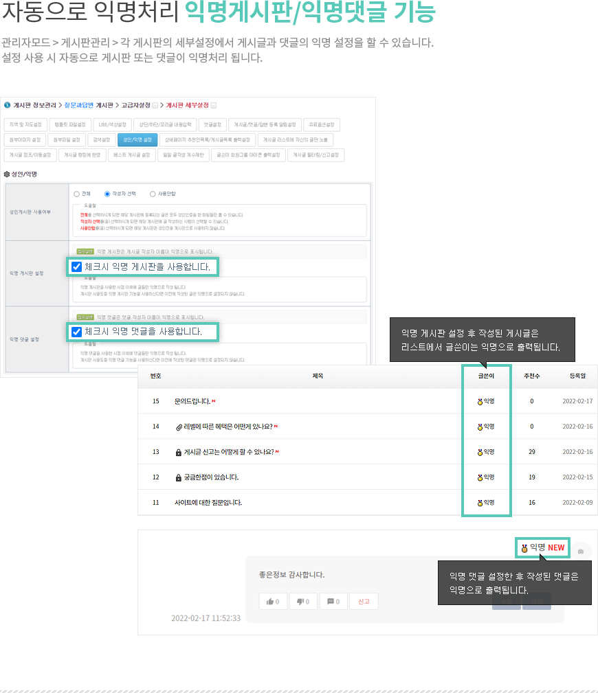 ✅ 포인트 설정, 익명 설정 등 커뮤니티에 최적화된 시스템