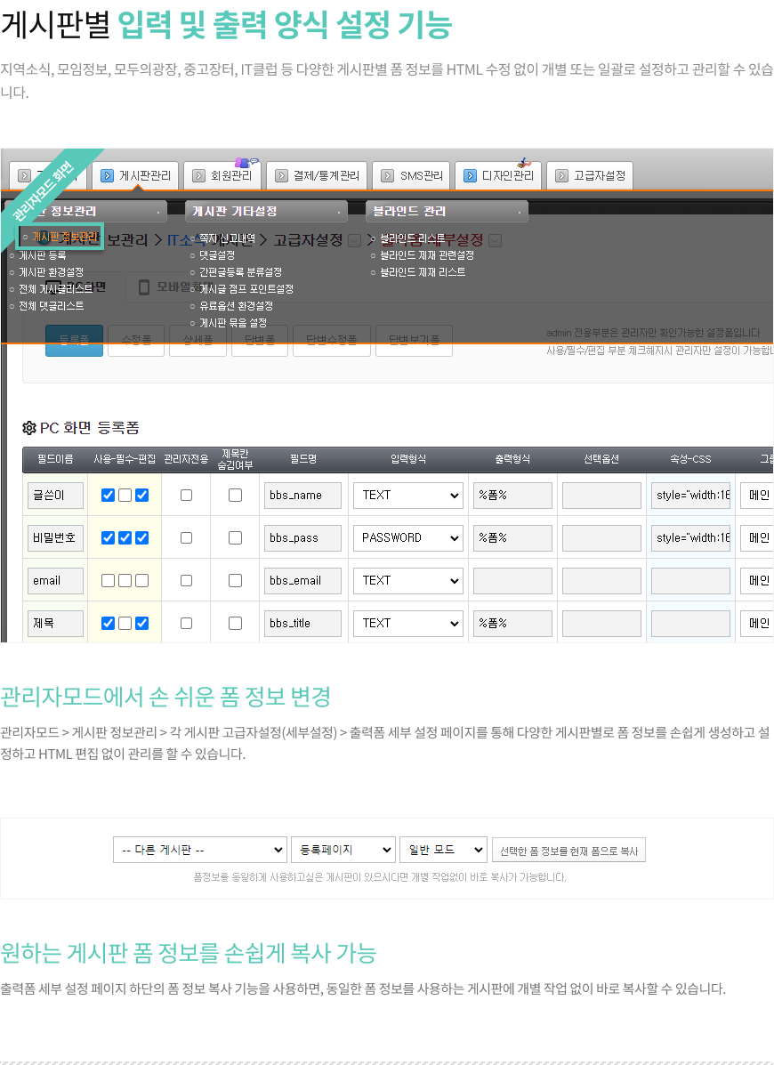 ✅ 게시판별 디자인 및 입력양식 설정 시스템