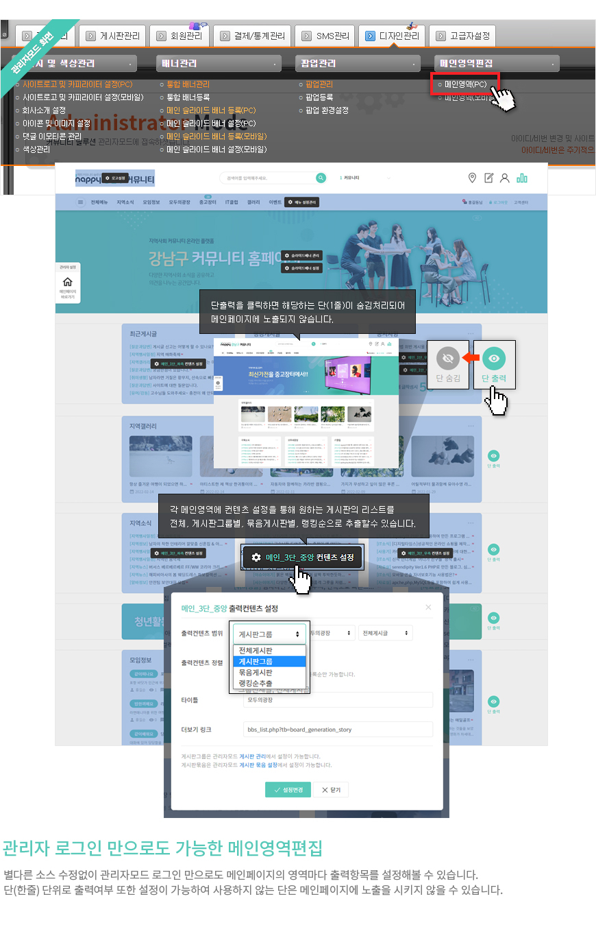 ✅ 웹을 통해 설정 가능한 메인페이지 출력 설정 시스템
