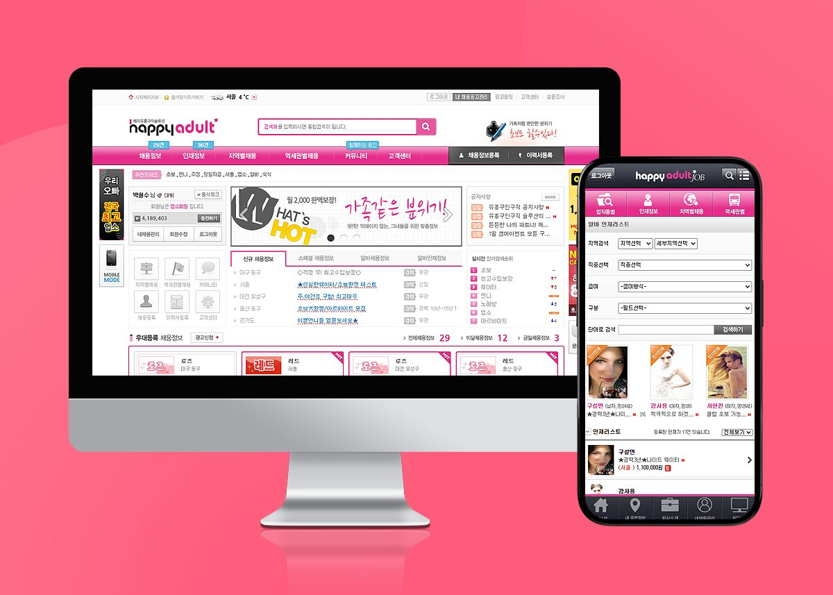 성인 업종에 맞춰 설계된 전문 구인구직 플랫폼 제작 솔루션으로,