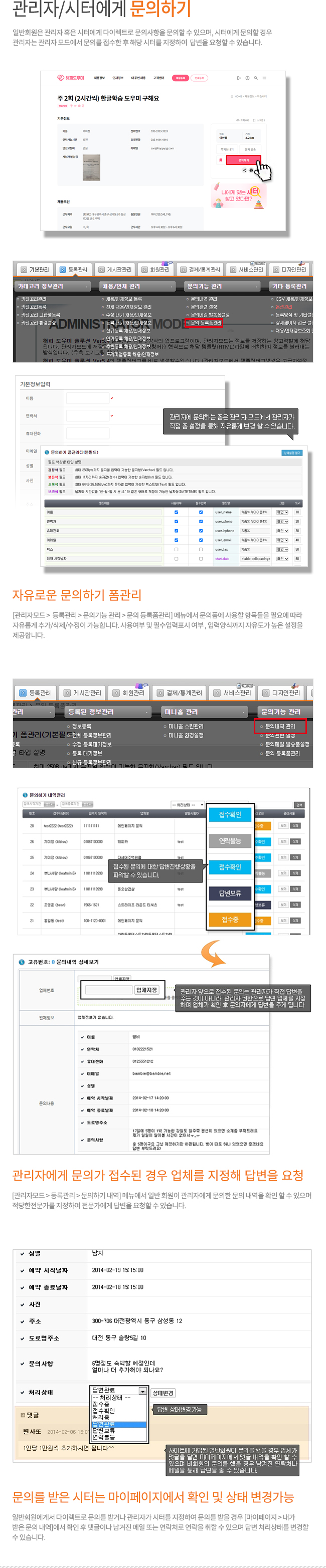 ✔ 온라인 문의 기능 → 도우미(시터) 채용·지원 관련 문의를 실시간 처리