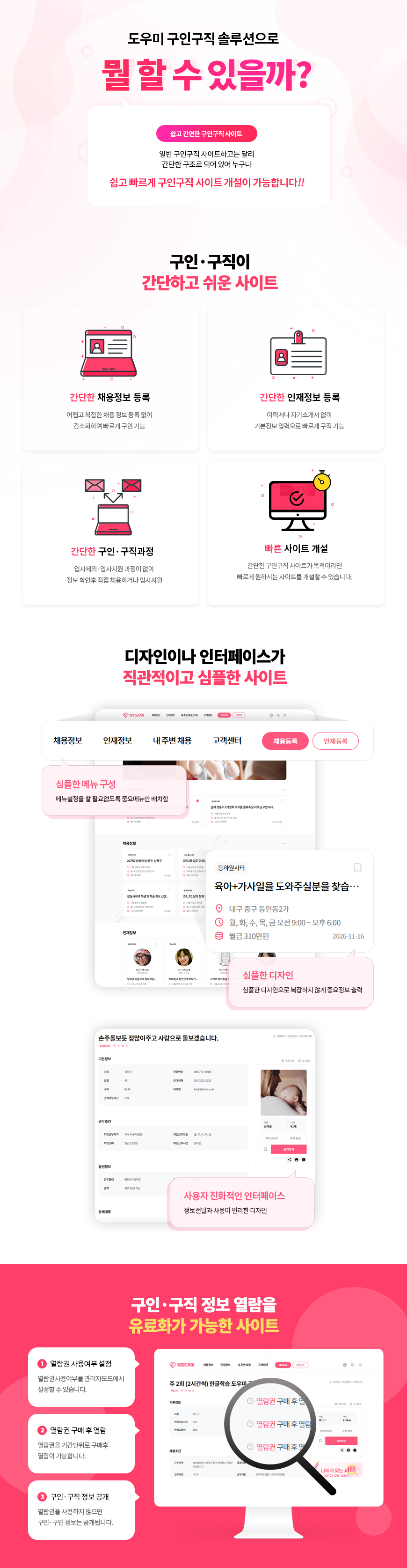 도우미 업종에 최적화된 전문 구인구직 플랫폼 제작 솔루션으로,