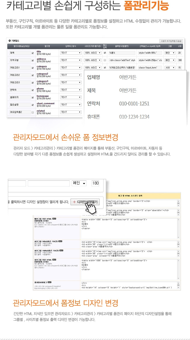 ▶ 카테고리별 입력양식을 별도로 설정하는 카테고리별 입력폼 설정 시스템