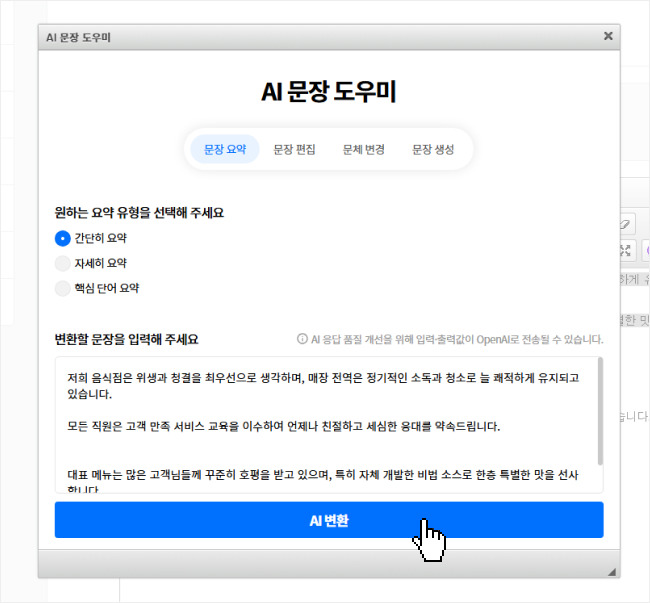 ✅ 단 시간에 업체 정보글 완성! AI 문자 도우미
