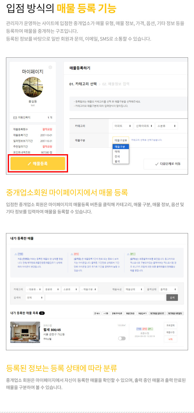 회원은 직접 매물을 등록하고 관리할 수 있으며,