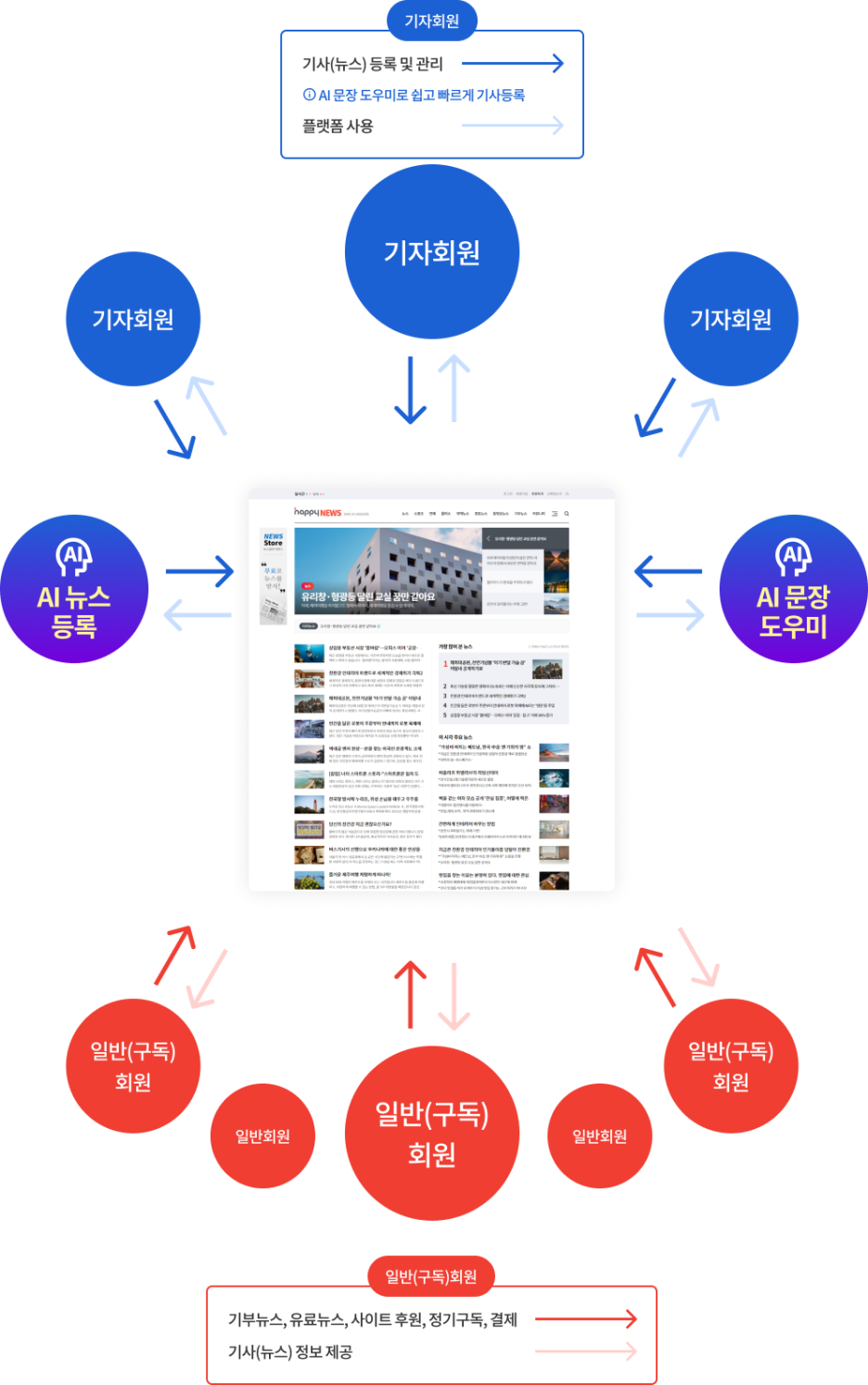 ✔ 운영 효율성 확보 → 기자·회원 권한 관리, 관련 전문 시스템 운영