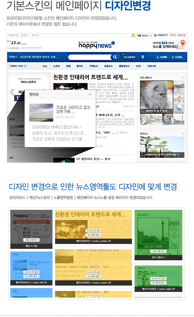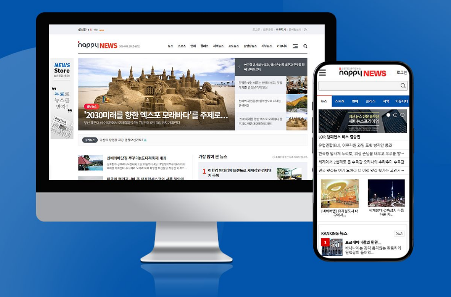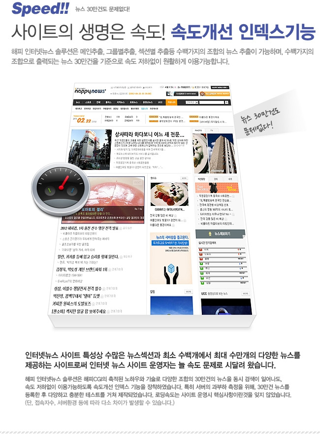 해피 인터넷뉴스 솔루션은 뉴스 포털 제작에 최적화된 홈페이지 솔루션으로,