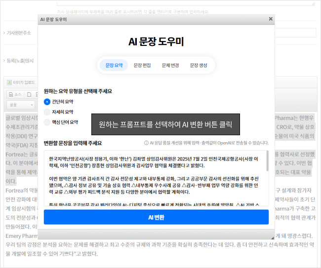 ✅ AI 도우미를 이용한 기사완성, 오탈자 보정, 문법 보정 기능