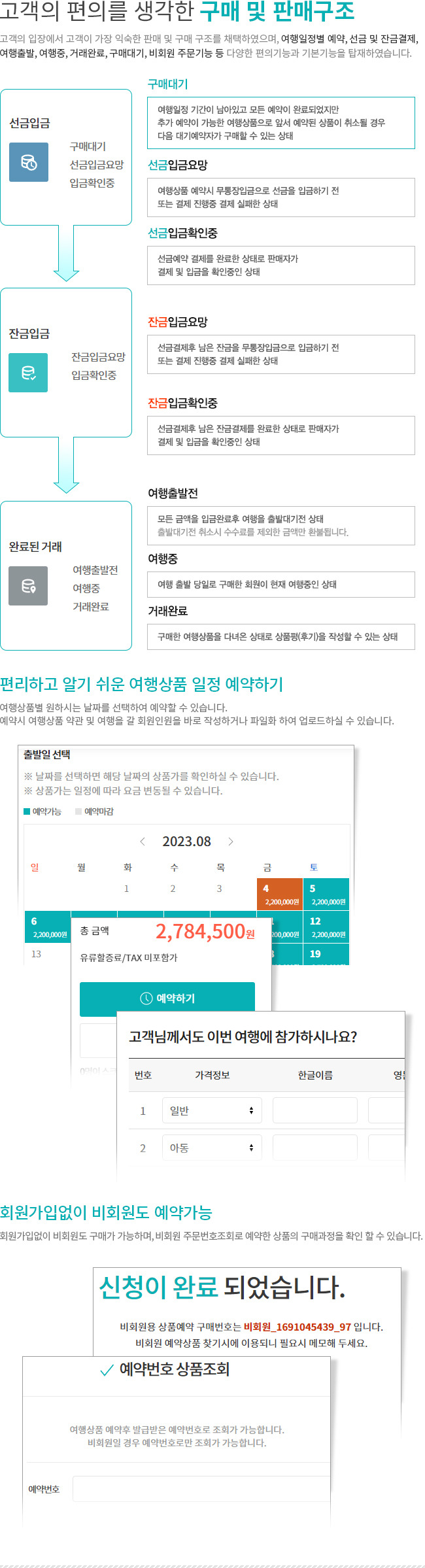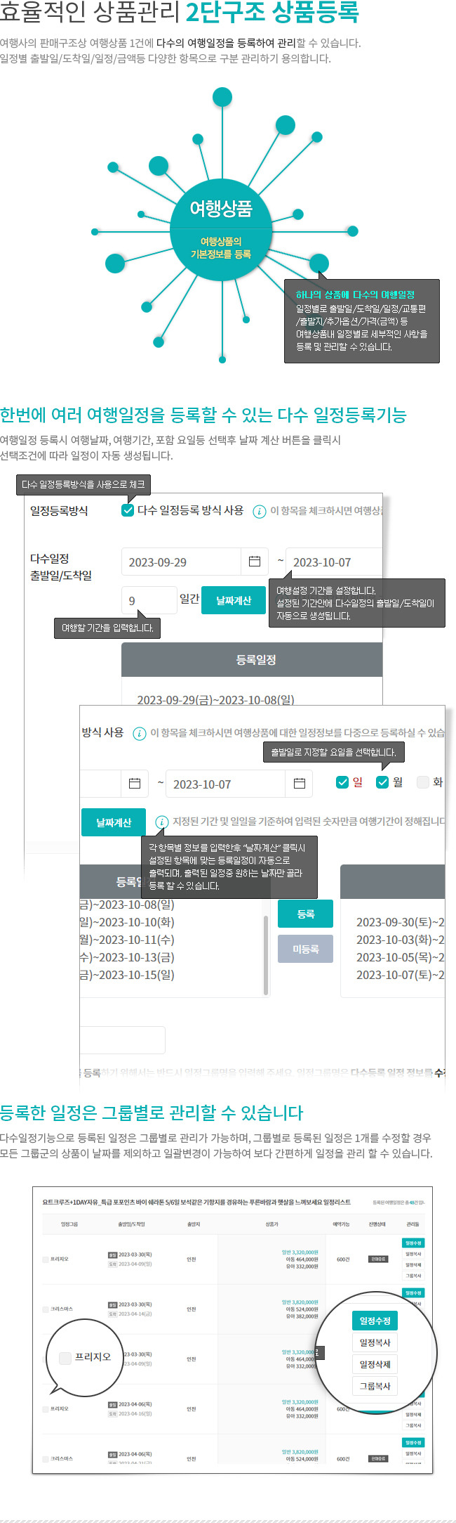 회원(여행사)이 자유롭게 상품을 등록·관리할 수 있고,