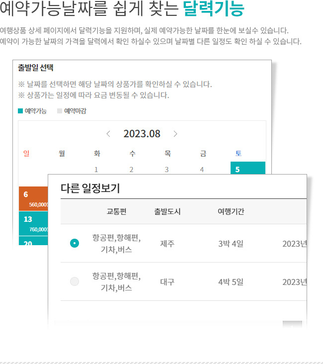✔ 강력한 검색 기능 → 지역·테마·가격·일정 조건별 맞춤 검색 지원