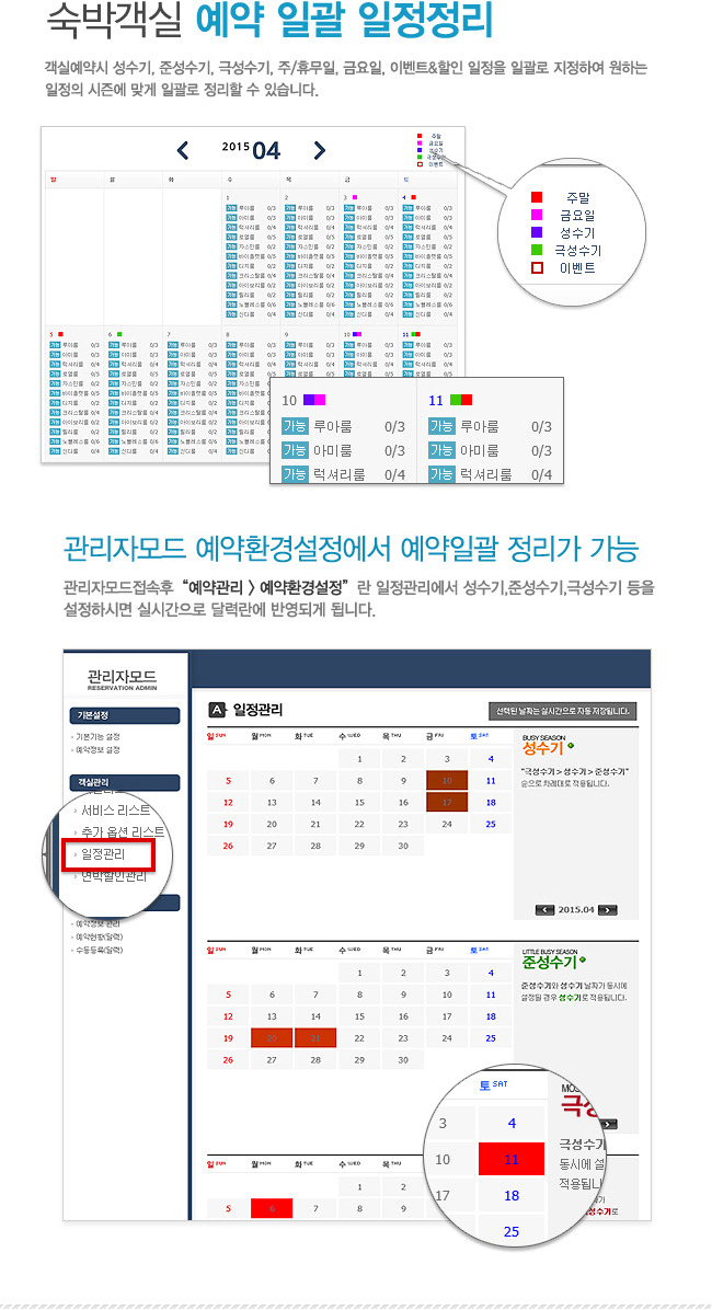 ✅ 객실별, 시즌별, 일정별 예약 일정관리 시스템