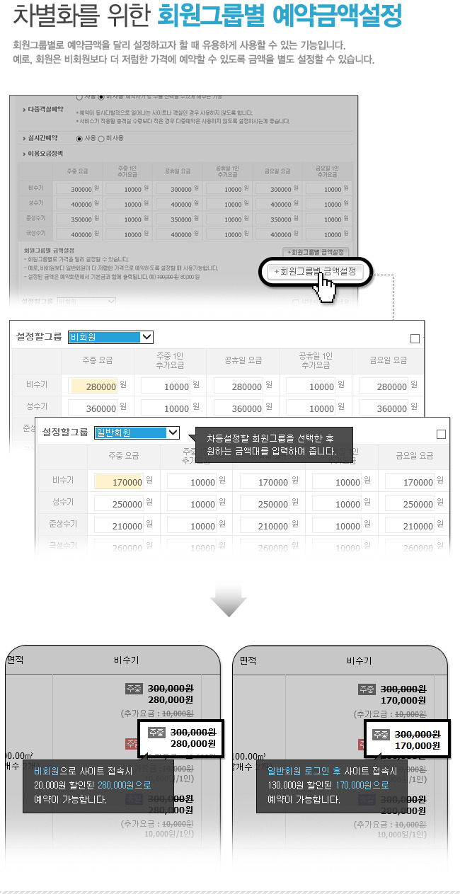 ✅ 회원그룹별로 설정 가능한 예약금액 설정 시스템