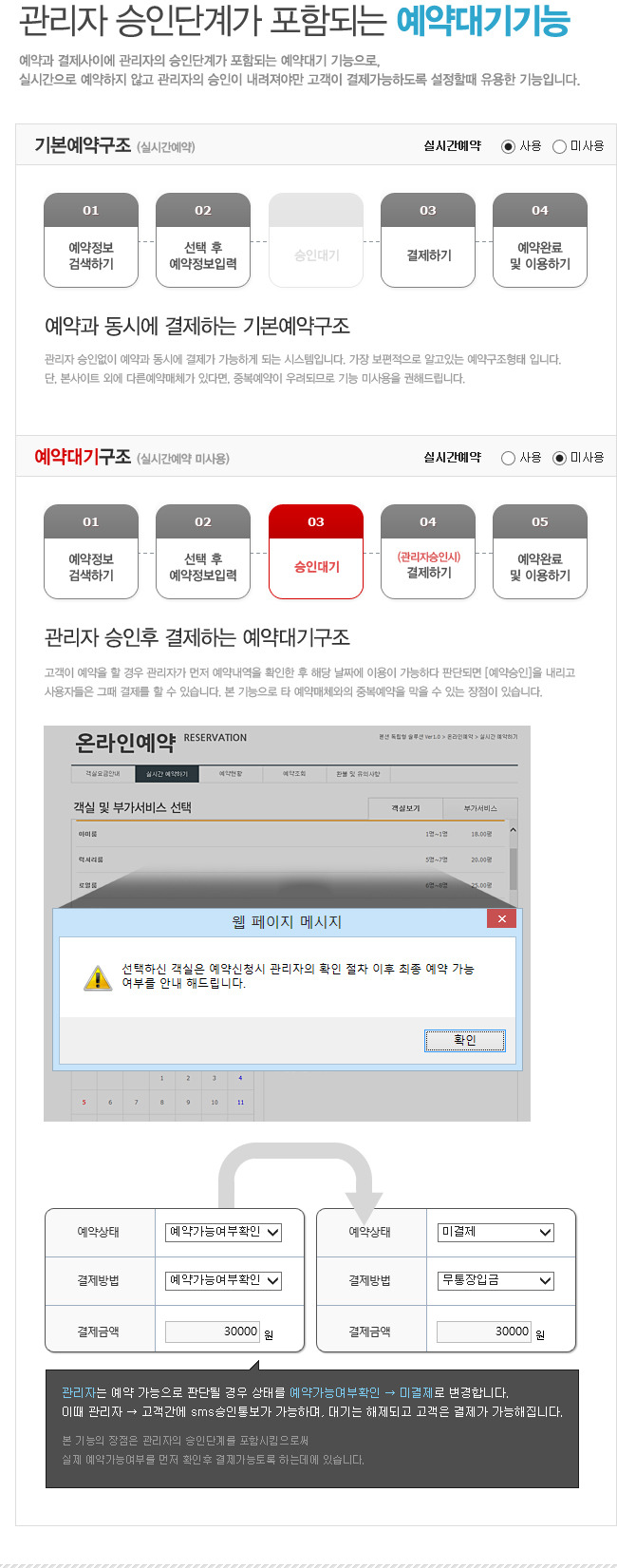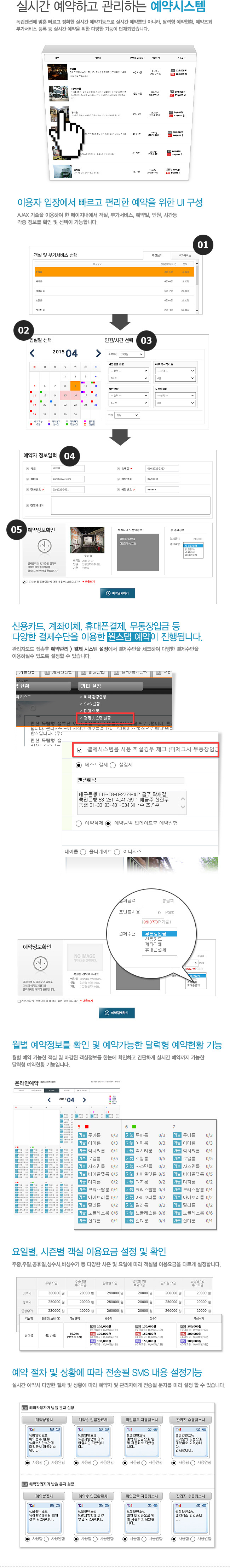 자체 홈페이지를 통해 실시간 예약 서비스를 제공할 수 있도록 만든 전문 프로그램입니다.