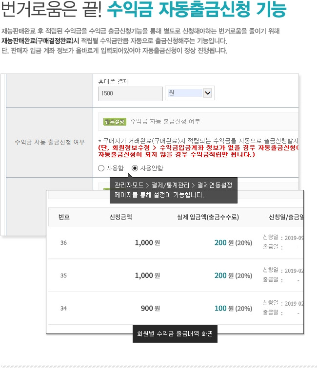 ✅ 간편한 수익금 정산 출금 신청 시스템