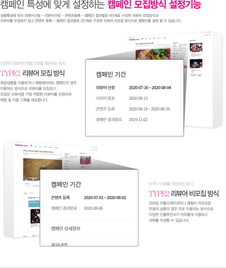 ✅ 캠페인 특성에 따라 설정가능한 모집방식 설정 시스템