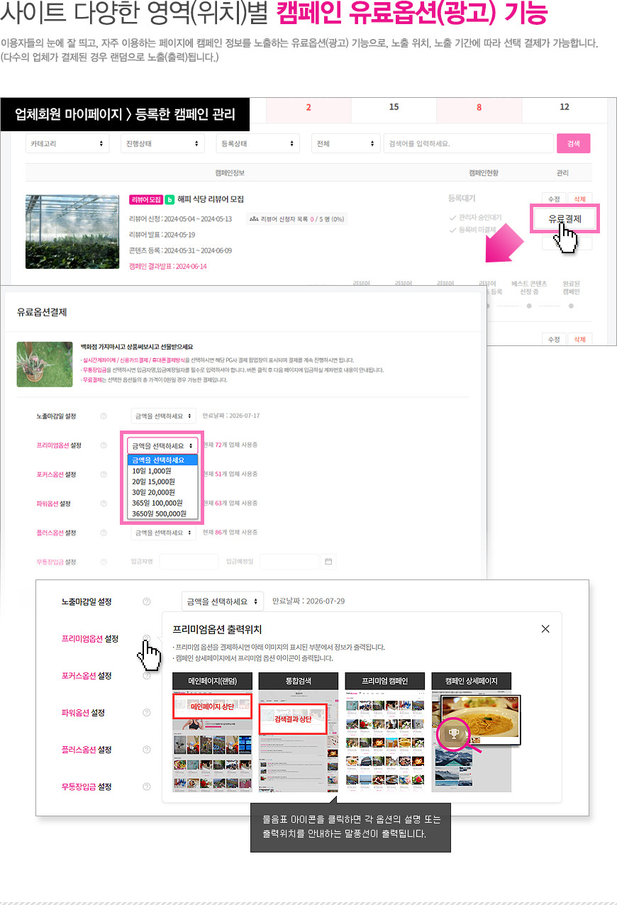 ✅ 중개 운영자의 수익 창출을 위한 다양한 유료 시스템