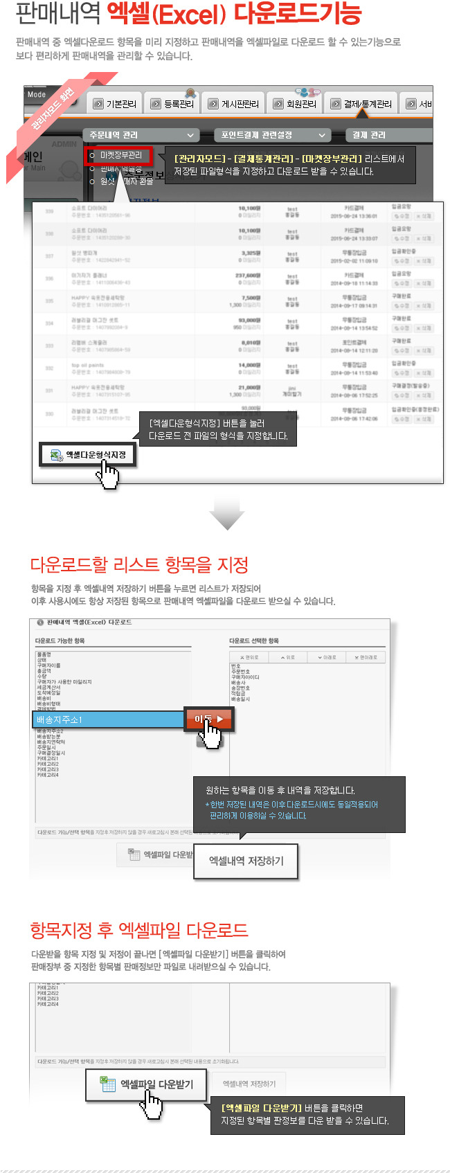 ✅ 판매내역 엑셀파일 다운로드 등 운영에 최적화된 다양한 편의 시스템